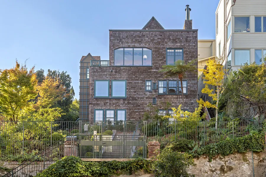Incredible opportunity to own a stunning view home surrounded on all sides by beautiful terraced gardens, and perched on top of Russian Hill. This one of a kind home boasts incredible Downtown and Bay views from multiple floors. Legally a two unit building the flexible floor plan allows for use as a single-family home. The main top unit features 3 bedrooms with 2 baths, with wonderful entertainment living and dining rooms, charming kitchen and study/family room leading out to a tranquil large back deck surrounded by gardens. All bedrooms have decks as well. The large living room is stylish with a wood burning fireplace and handsome architectural details. The lower unit can be connected to the main house and offers 1-2 bedrooms and 2 full baths. The home is equipped with a new elevator and spacious 2-car garage. The ample outdoor space provided unmatched opportunities for entertaining. Incredible Russian Hill location, easy access to Downtown, North Beach, restaurants, transit and more.