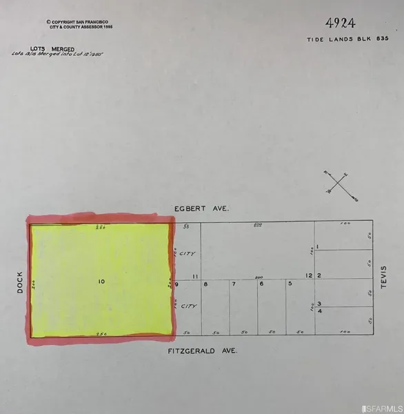 Own a piece of San Francisco. 50,000 sqft (250x200) tide land off Candlestick Point State Recreation Area and Hunters Point Expressway. Land is underwater. Zoning is RH1D per public record. Land is identified as parcel number (APN) 4924-010. Street #250 is not an official assigned address. San Francisco has rich history of waterfront development. Much of the Marina District started off as water plots before 1915. For your reference, there are a few dozen piers along the eastern waterfront of San Francisco. Here is the list: https://en.wikipedia.org/wiki/List_of_piers_in_San_Francisco. Seller is not sure if this tide land can be developed into a yacht harbor, houseboat park, a pier or anything at all. Buyer is encouraged to consult with State and County agencies, as well as real estate and land use attorneys. Seller is selling multiple neighboring lots which can be purchased either as a package or as a stand-alone parcel.