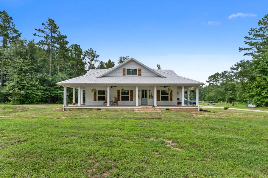 Custom farm house on secluded 7.6 acre partially wooded and partially fenced horse property. Energy Efficient home built in 2016, spacious open floor plan with great upgrades that bring ol' style charm with modern amenities. Engineered wood flooring through out home. Kitchen with pantry, farm house sink, professional gas range, pot filler, and concrete counters. Four Bedrooms, 3 full baths, 3 bedrooms downstairs(including master. Upstairs has game room/office, bedroom and full bath. Almost 800 sq/ft of wrap around porches. Acreage suited for horses or 4H project animals and has fenced pasture. Property has 12'x24' storage outbuilding and above ground pool with deck. Utilities and Septic in place for barn or guest house.
