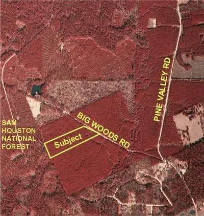 Beautiful rolling east Texas timberland adjoining the Sam Houston National Forest. TALL pines, quiet winds, privacy, dead end gravel road. About 10 miles from I-45. About 60 miles from downtown Houston, Texas.