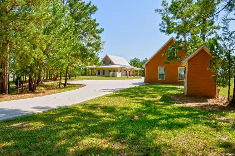 *Bought with an additional 50 acres for a total of 139 acres. Weekenders and hill country lovers will be drawn to the 87 acres lakeside home with Tuscan accents, gated and divine concrete entry drive, guest house/garage, FM frontage, rolling treed, pastured, and wooded terrain.The perfect setting of rolling terrain, lakes, & pastures for a weekend get-away or full time residence on this 2009 custom built home (1,855 Sq. Ft.), located just a short 30 minutes from Kingwood area & about 50 miles from Houston. There's room for friends & family to enjoy the serenity with a detached garage apartment. This property features 2 stocked lakes & water features.