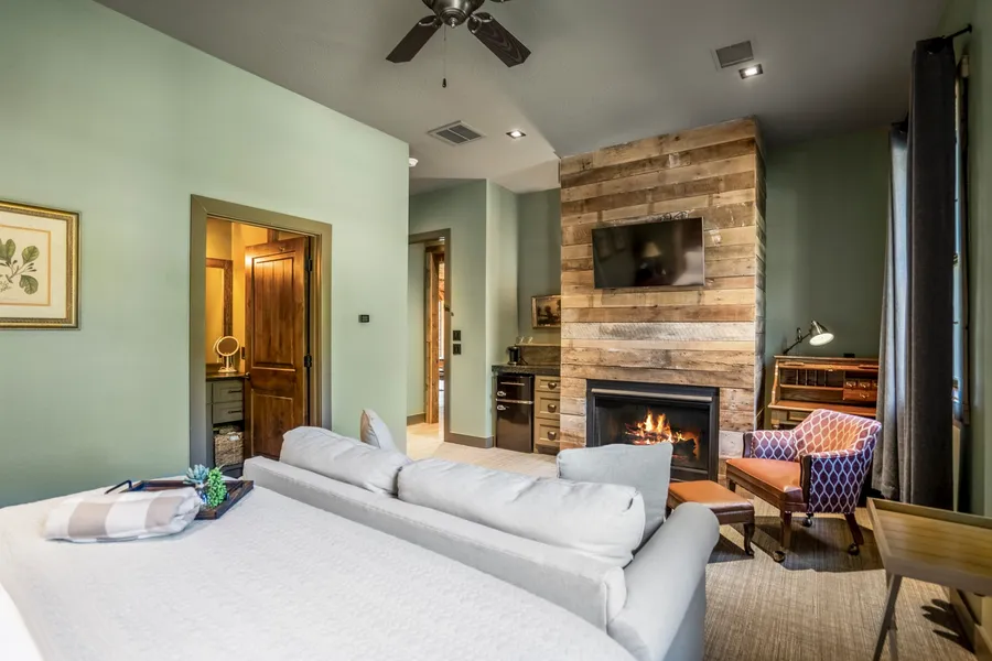 Pine Hill Lodge was thoughtfully reconstructed from an early-1900s Indiana barn, carefully reclaimed after nearly a century and transformed into a refined retreat that honors its history while offering modern comfort. The original barn now serves as the main living area, featuring three bedrooms, three and a half baths, and a spacious kitchen seamlessly integrated into the structure. Hand-hewn beams, cozy fireplaces, and distinctive details are found throughout. The back porch overlooks peaceful wooded views and leads to a private lagoon-style pool with a dock, hot tub, and outdoor lounge with a fireplace. Across the pool, the bunkhouse offers a large downstairs gathering space, an upstairs bunk room, and a full bath. A separate mother-in-law suite includes a living area, kitchenette, and full bath. In total, the estate offers five bedrooms, four full baths, two powder rooms, and over 4,600 square feet of air-conditioned living space—truly one of a kind!
