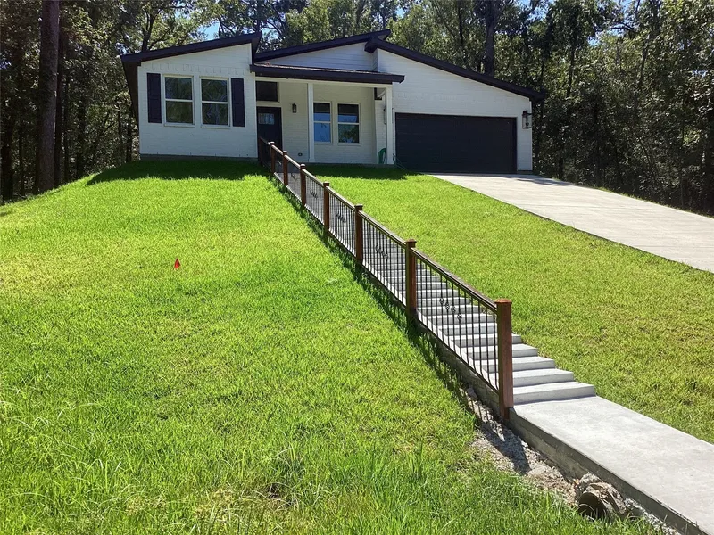 NEW CONSTRUCTION. High above and across from the Pete Dye designed Waterwood National Golf Course and the Lake, this modern, single story, open concept designed home provides all necessary requirements for easy relaxed living. Just installed beautiful staircase provides access to the front of the house. High ceilings and large windows throughout the house. Amazing, large kitchen with ample cabinet space, farmer's sink, wine cooler and all stainless-steel appliances. To escape from the hustle and bustle of the city life, just sit on the front porch or open the back French doors and from the deck enjoy serene ambiance of the nature and wild life and view of the Lake Livingston and golf course near. Living in Waterwood, you will also enjoy access to private golf course, boat launch, pool, pavilion and 24/7 security patrol. This home on the hill is absolutely stunning. Just make your appoint...