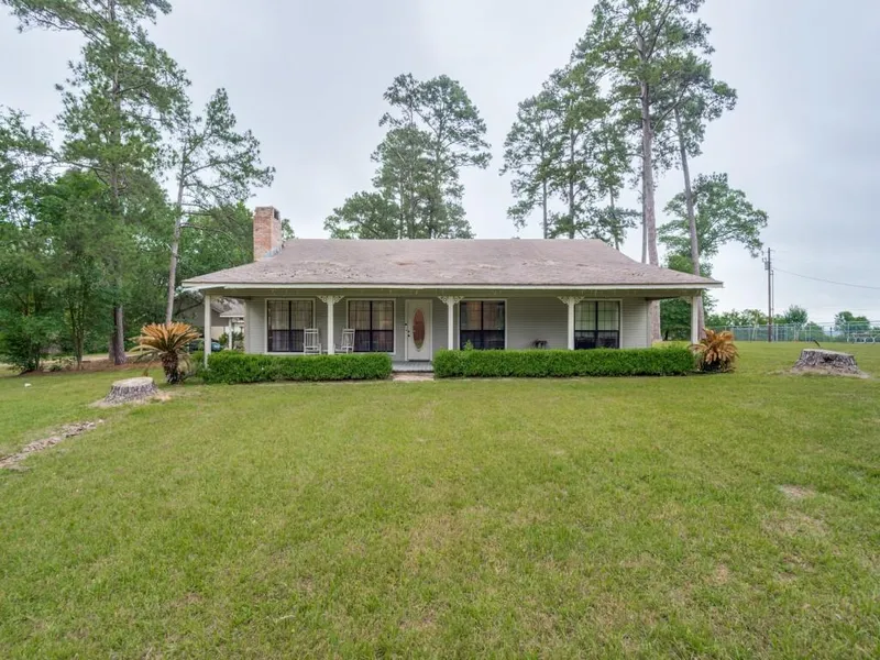 2+ Acres and home in Coldspring. This 3 bedroom, 2 bath ranch style home sits on a partially fenced parcel with a 59'x28' (approx.) metal workshop. There is a water view of Lake Livingston from the covered back porch! Open concept living, dining, and kitchen. High ceilings, a gas log fireplace, & custom built-ins enhance the large living area. Kitchen has ample cabinet space, an island, a breakfast bar, & a walk-in pantry. Large primary bedroom opens to the covered porch on the back of the home. The primary bedroom has an en suite bathroom featuring a vanity, separate toilet, 2 walk-in closets, and a walk-in shower. 2 additional bedrooms, and a hall bathroom with double vanity sinks and a separate room with toilet and tub/shower combo. Plenty of closet space, & custom built-ins throughout the home. Minutes from Lake Livingston, the Sam Houston National Forest, Double Lake Recreation area...