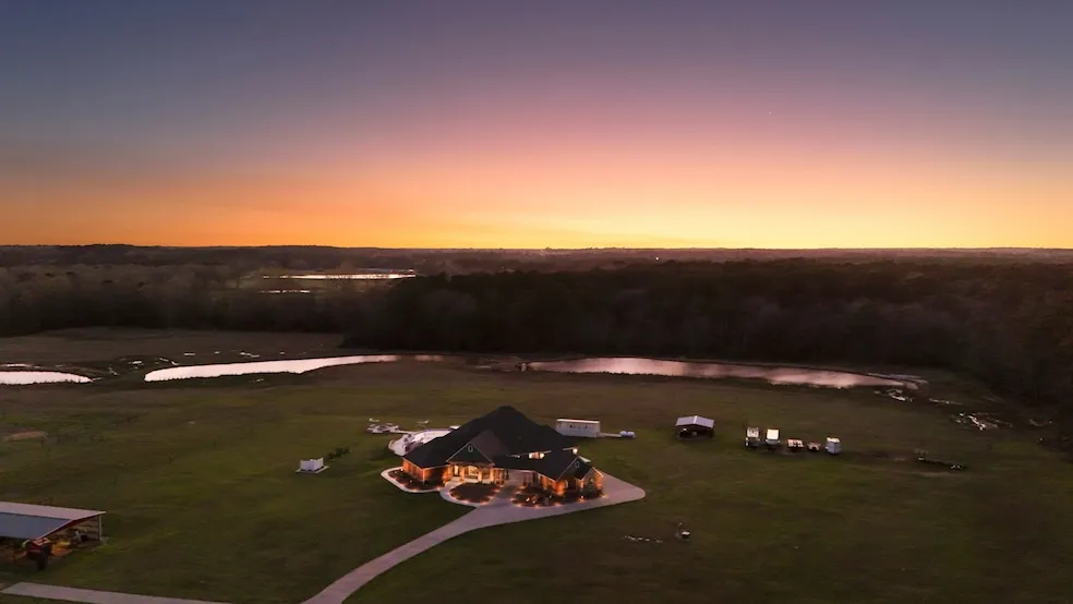 Discover the ultimate farm & ranch paradise with a 3123 sqft home setting on a sprawling 56-acre ranch. Designed for luxury living, farming & a touch of equestrian excellence. The property boasts breathtaking panoramic views, 5 barns, providing ample space for stabling & caring for your animals. The ranch features 3 spring-fed ponds, fully stocked for fishing & leisurely afternoons, alongside a tank that enhances the picturesque landscape. ElectroBraid fencing surrounds all four improved pastures, ensuring safety & security for your animals. Equestrian enthusiasts will appreciate the dedicated riding arena, perfect for training or recreational riding. After a day of outdoor activities, unwind in your private pool complete with a lazy river, offering a relaxing retreat. Entertain guests in style with a fully-equipped outdoor kitchen, ideal for hosting gatherings under the stars. This exce...