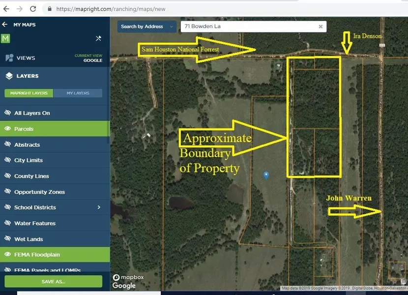 22+ acres and home across the street from the national forest! Beautiful tract of land sits off a county-maintained gravel road. The acreage is more densely wooded toward Ira Denson Rd. and then partially cleared toward the back of the property and the home. Mobile home is 2 bedroom/2 bath with open concept living, kitchen, & dining. Built in 2012, the home is clean with an efficient layout. The dining/kitchen area has large windows that look out over the beautiful tract. There is also a built-in desk in the kitchen area. Stainless steel appliances. Master bedroom has an en suite bathroom, double vanity, walk-in shower, and separate tub. There are decks off both sides of the home. There are 2 out buildings currently being used as storage, & a carport for 2 vehicles. Water well and on-site sewer system. Come see this haven located a short trip from Coldspring and Lake Livingston!