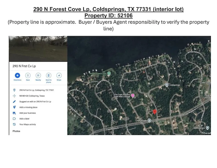 Research Parcel InformationFrom FM 224: Go Northeast on S. Cape Royale Dr: Go North on N. Forest Cove Loop: Lot will be the 2nd lot on your left.