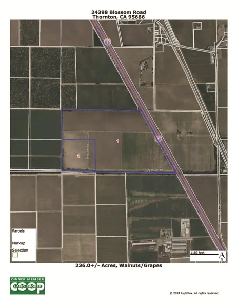 DESCRIPTION: Flood Irrigated Chandler Walnuts on Paradox Root Stock and Flood Irrigated Merlot & Syrah Vineyard located in Lodi Appellation Viticultural Area just West of the Mokelumne River Appellation Viticultural Area, which is the closest of the seven Lodi viticultural areas to the Carquinez Strait that Funnels Cool Pacific Ocean Breezes Eastward from the Golden Gate, through the Sacramento San Joaquin Delta