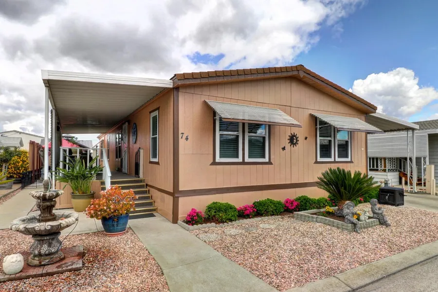 Don't miss this newly remodeled double wide mobile home, in nice quiet 55 and over park. New laminate floors, carpet, spacious open kitchen with new granite counters, plenty of natural light, & cabinets throughout, neutral carpet & paint, bathrooms are beautifully updated with quartz. Newer roof, new paint, plantation shutters, 3 car carport, nice sitting areas outside with patio. Nicely landscaped, storage shed included! This one won't last long! Move in ready with over 70k in upgrades & renovations!