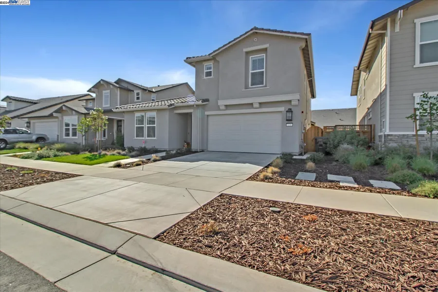 Come see this beautiful 4 bedroom, 3 bath home in River Islands. The home has the master bedroom and a separate bedroom with 2 baths downstairs for an ideal in-law set up. The upstairs boasts 2 spacious bedrooms with large walk-in closets and a spacious loft. The home is equipped with solar that is owned, dual zone heating and cooling, ceiling fans, 6 inch baseboards, security system, dual pane windows, shutters throughout, LVP flooring, tile floors, tankless water heater, covered backyard patio, fully painted garage with epoxy floor covering with extended storage area, reverse osmosis filtration system, a large kitchen island with water fall quartz counters, backsplash subway tiles, soft close drawers, pantry, filtered water dispenser and 5 burner stove, equipped for a EV charging station! A backyard is waiting for you to make it your own.
