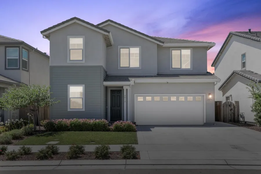 Gorgeous home in River Islands, 5 bedrooms, 3 full bathrooms. Open concept floorplan. Fully landscaped backyard with pergola and gazebo covered in string lights. K-8 school is located across the street overlooking the soccer field. Home bursts with upgrades, equipped with a gas fireplace, hardwood flooring on first floor, double sinks in upstairs bathrooms, 12080 sliding doors at kitchen. Barn door to master bath. Extended cabinets with hub into the dining room, farm sink in island. Additional storage cabinets in master bedroom and hallways and in family room.