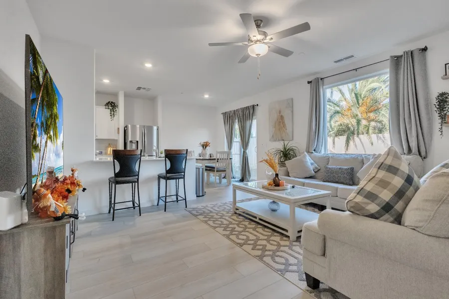 QUALIFIES FOR UP TO 13K GRANT!! One of two left! The Baker floor plan exemplifies a single-story home designed for both ease and elegance. This floorplan includes 2 well-sized bedrooms and an open-concept layout that enhances fluid movement throughout the home. The kitchen, featuring stainless steel appliances and stylish plank flooring, opens gracefully into the adjoining family and dining rooms, making it a central hub for everyday living and entertaining. A walk-in pantry adds a touch of convenience, offering ample storage for culinary essentials. The master bathroom is a luxurious feature with a large vanity and step-in shower, while the secondary bathroom is designed for versatility with a tub/shower combination. Hardly lived in why wait when you can buy now! Ask me about rates as low as 5.25% fixed for 30 years! Paid off solar included!