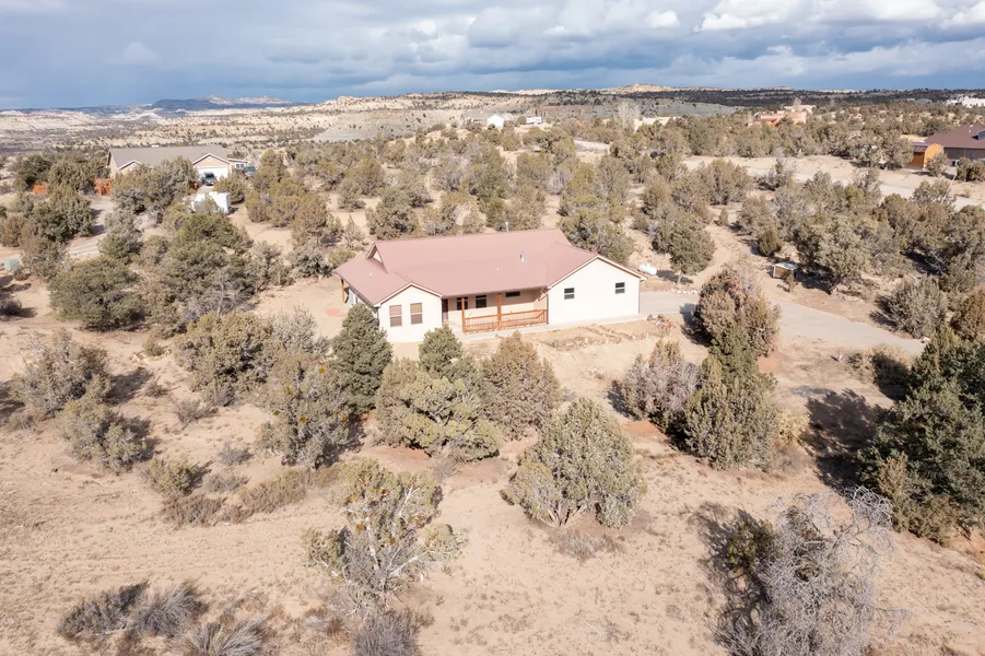 Site built home that is approximately 10 years old (2012) and it is ready for a new owner. Pride of ownership is recognized right away from tile and bamboo floors to the cathedral ceilings. Open floor plan that gives lots of sunlight into the home from the windows on the east and west side. The living area has built-in shelves and a pellet stove that work efficiently. The living room is open to the dining area and part of the kitchen. All kitchen appliances stay with the property and the freestanding range is set up for gas or electricity usage. This home sets on approximately 4.13 acres and the setting is quiet, up on a hill, in a subdivision with pinon and juniper trees. The garage is finished and oversized plus the roof is pitched with metal roofing. There is much more information about this lovely home and the document is attached to this listing. Call listing brokers for more information.