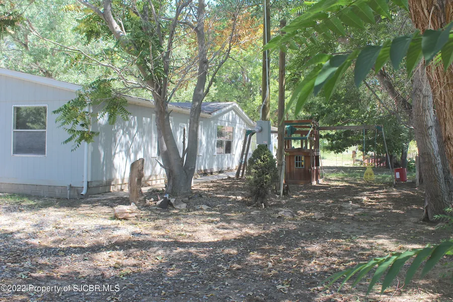 Four-acre irrigated property with a 2090 sq. ft., 4 bedroom/2 bath manufactured home located at the end of County Road 4598. The property consists of two, 2-acre parcels with nearly 2.2 acres available for irrigation (per seller). Irrigation is via an underground pipe off the Lee Hammond Water Users through a 6'' buried pipeline. The fields were watered via sprinklers using 2'' hoses. The 2000 Fleetwood home is built on a concrete block wall foundation/crawlspace with poured concrete slab runners. It has a pitched roof with an open kitchen/dining/den floorplan. The master bedroom has a large walk-in closet. The home is connected to City of Bloomfield water, Farmington Electric, and propane. Newer septic and HVAC unit. 15 minutes to Bloomfield, 30 minutes to Farmington, an hour to Durango. Navajo Lake, Carson National Forest and Thousands of acres of BLM land are all less than an hour away.