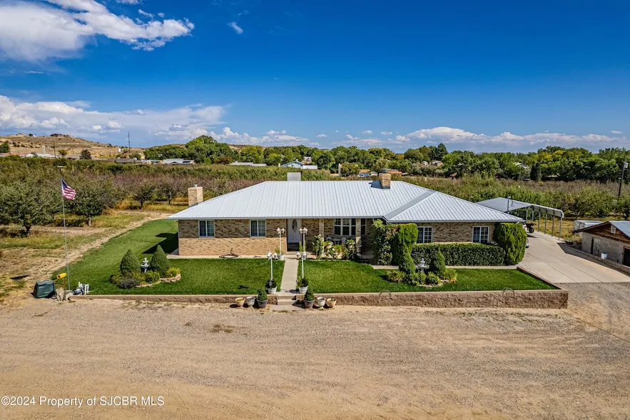 Do not miss this opportunity to own this established fruit orchard with views of the San Juan River and the Bisti Bluffs. Family-owned since 1945. 27.92 Irrigated Acres with 2,500-3,000 fruit trees and a mind-blowing 77.5 acre-feet of irrigation!!! Well-composted soil! Property includes 3 homes (2 of which are active rentals), 3 Ag Buildings, an active gas well, and several other storage buildings. Home #1 is a nicely updated 1985 brick home with 3 bedrooms, 3 bathrooms, an attached oversized 2 car garage, wood flooring, crown molding, a pantry, an office, and a jacuzzi room. First floor is 1909sf and the finished basement is 1472sf. Home #2 is currently rented, and is a 1437sf 3 bedroom 2 bath home built in 1962. Home features a fireplace in the living room, an attached 2 car portico with storage, a 546sf unfinished basement, a patio, a gazebo, and a laundry room. Home #3 is currently rented and is a 3 bedroom 1 bathroom 1512sf updated home built in 1956. Home is a stucco home with a pitched shingle roof, covered patio, foyer, and a utility room. Outbuildings include a 2400sf fruit packing barn with 2 cold storage rooms, a 1200sf barn, and a 600sf barn. The orchard trees consist of 15 types of apples, 8 types of peaches, 3 types of nectarines, 5 types of plums, 3 types of prunes, pears, apricots, and cherries. Roughly 60% apples, 20% peaches, 10% pears, and 10% others. Irrigated with open flood irrigation with 10% done in 6'' pipe. Homes are provided natural gas (as of listing) and royalties from gas well operation.