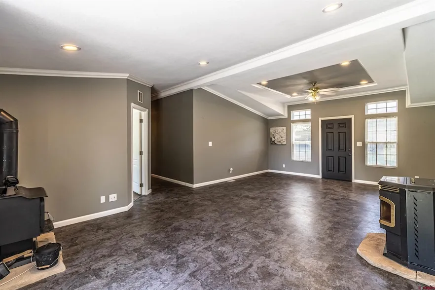 ''Duex Poires'' PRICED BELOW RECENT APPRAISAL! WHAT A DEAL! Stunningly remodeled cabin-style manufactured home on a permanent foundation, nestled in the serene countryside on 1.262 fully fenced shady acres. Just 10 minutes from Farmington, NM on Southside River Road, and less than an hour from Durango, CO. The property boasts abundant foliage, including two 100-year-old heritage pear trees, remnants from the original homestead. This roomy 1,875 sq ft home offers 4 bedrooms and 2.5 bathrooms with vaulted ceilings and ceiling fans throughout. Recent updates include fresh paint, a new primary bathroom, new flooring, new kitchen counters, new exterior doors, new exterior stain, and more! The dine-in kitchen features a coffee bar, stainless steel fridge with ice maker, electric stove, microwave, and dishwasher. An oversized laundry/mudroom doubles as a pantry. The living room/den combo includ...