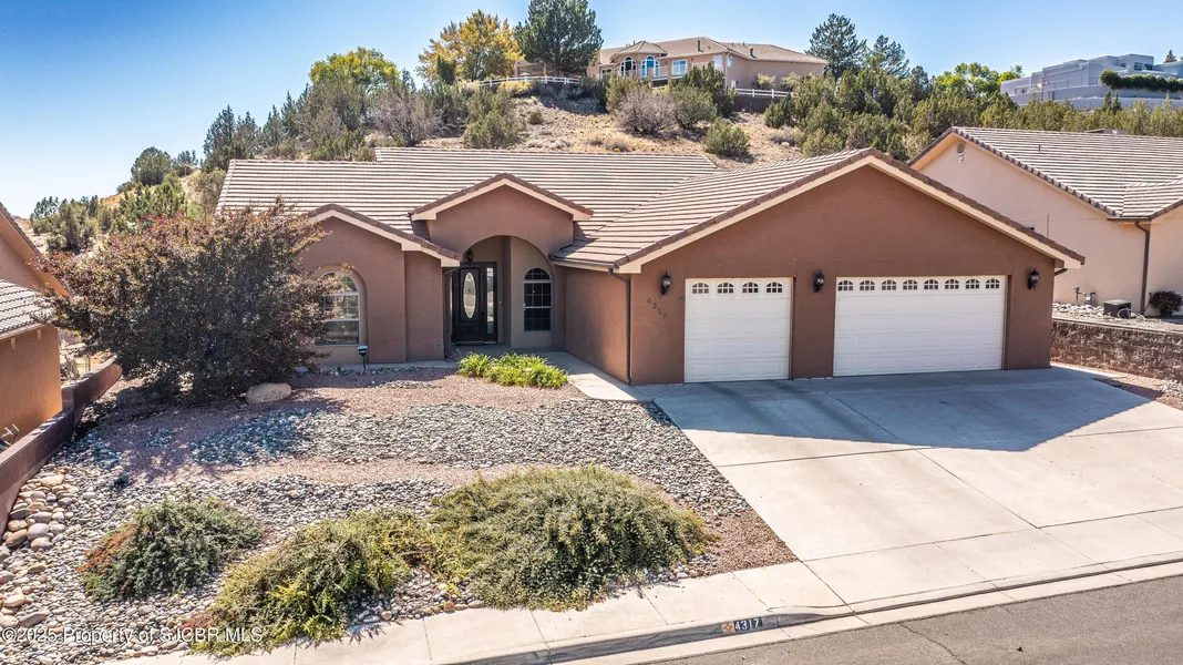 STUNNING HOME IN SUNRISE SUB! Open living concept, 12ft ceilings, foyer entry, formal dining room with a chandelier, spacious living room with gas log fireplace, wonderful galley style kitchen with a raised bar, eat-in nook, upgraded fixtures and solid surface countertops. Split bedroom arrangement with primary featuring a custom tray ceiling, en-suite bath, jetted tub, walk-in closet, separate shower with multi-set water jets and private access to the covered back patio. 3 additional bedrooms with walk-in closets, excellent guest bath with upgraded tile surround. Low maintenance yard front and back, raised beds and a large lot that carries up the hill. Open air deck for views, entertaining and enjoying the fireworks! Other amenities include brand new carpet in the living room and primary bedroom, HVAC heating/cooling, EXCELLENT LOCATION and ready for a new owner!