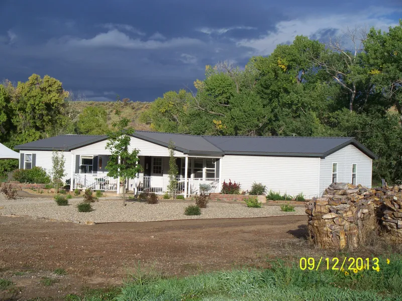 This is a BEAUTIFUL property. Located 18.11 miles from Farmington, NM, this doublewide home has been wonderfully remodeled with solid surface countertops, stainless appliances, newer tile, carpet,roof, paint,concrete, landscaping, sprinklers, lights, and much more. A Swim spa is included, as well as storage building and a detached 2 car garage,shop. A new survey has been completed, home has been Pre-Inspected. This property has beautiful views, sits on the La Plata River, has domestic water for the house, a well and ditch for irrigation.