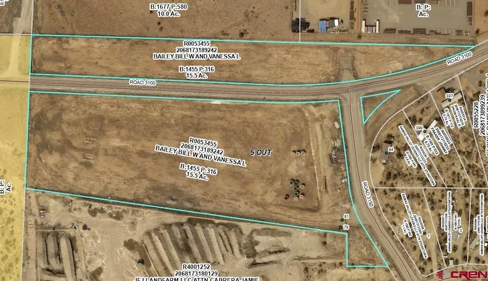 This exceptional commercial and industrial property on Crouch Mesa offers prime potential for a wide range of uses. Spanning approximately 4.63 acres on the north side of Road 3100 and 10.86 acres on the south side, the property is strategically divided by the roadway. The land has been leveled, with gas, water, and electricity readily available nearby. With its versatility, this property is ideal for various opportunities, from storage solutions to a prime building site. Centralized access to Farmington, Aztec, and Bloomfield. See also MLS# 24-1454.