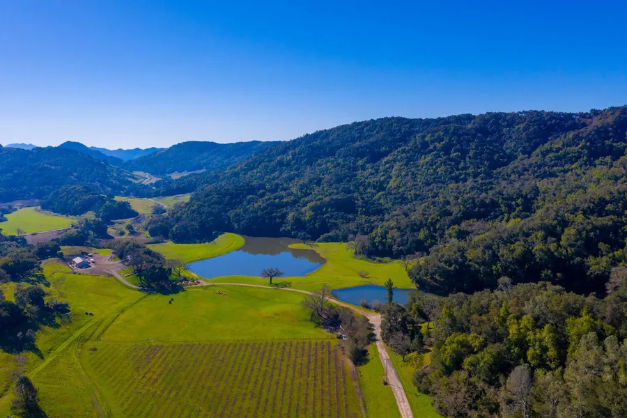 Situated in the 46 West Corridor on the desirable west side of Templeton, the property is the most westerly corner of the original historic ranch, Rancho Asuncion. The terrain consists of large flat areas, rolling hills, and a mountainside up to an ocean view ridgeline. Abundant trees also adorn the parcel, including various oaks, bays and madrones. Water includes two large spring-fed ponds with bass fishing, year-around running creek, 2 horizontal wells, spring system with solar pump, and 9,000 gallons of water storage. A desirable microclimate, the average rainfall is typically double to triple areas to the West and East, per the seller. Livestock amenities include 4 pastures totaling approx. 22 acres, pens/corrals/livestock working facilities with pipe fencing and chicken coop. The 35 x 85 barn has metal siding/roof and attached workshop. As-is manufactured home on a foundation offers 3 beds, 2 baths, 2 car garage, vaulted beamed ceilings, new septic, covered porch and panoramic views.