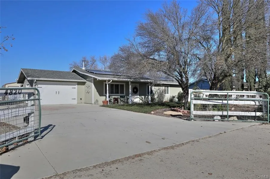 Fully fenced beautiful horse property! This lovely home has a remodeled kitchen with tile counters & floors, newer cabinets with custom pull outs and stainless steel appliances. The large master suite features a vaulted ceiling, wood burning stove, skylight with a french door leading out to the covered patio. The spacious master bath has a tile shower/soaking tub and dual sink vanity. Bedroom #2 includes a connecting full bath. Bedroom #3 includes a custom built-in desk and mirrored closet doors. The garage was converted to accommodate inside laundry, extra storage and space that can be utilized as a home office or guest room (not permitted). Additional features include natural gas (Not propane), tankless water heater, stamped concrete, 28' X 28' shop/outbuilding, RV parking and extensive concrete driveway. The horse facilities include: three 24' X 24' 4 rail galvanized panel fully cover...