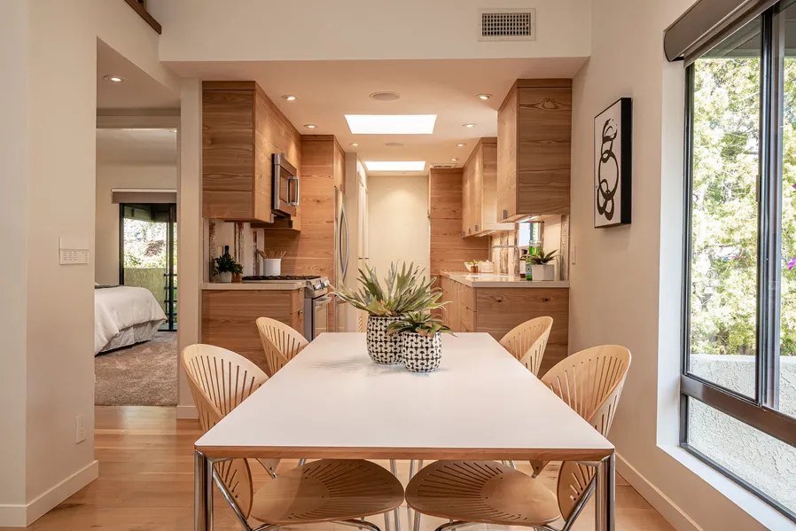 Progressively designed with the use of the highest quality materials for a modern way of life! Recent and very extensive renovations throughout offering exceptional quality finishes and the latest dcor. The gourmet galley kitchen features polished quartz countertops, stainless steel Bosch appliances and decorative Italian graffiti tile backsplash. Complemented by solid rift white oak floors, exceptional cabinetry and custom made doors, Lutron automated lighting and window blind system, hardwired speakers and dramatic vaulted ceilings. The Main bedroom features a huge custom built-in closet made of ash. There is also a loft for guests. Two private outdoor decks are finished in slate stone work and overlook lush landscaping. The one car garage is carpeted and features ample storage. Located on a prominent corner of the complex to allow maximum natural lighting and privacy. This is the perfect full-time residence or part time vacation pad in SLO. With easy accessibility to downtown and exceptional access to French hospital.
