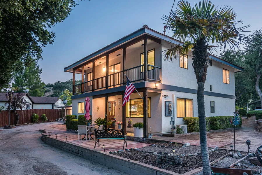 Situated at the end of the street on the west side of town. With 1.2 acres and surrounding oak trees sits this 3 bedroom, 2.5 bath home. The desired Paso Robles location and tranquil setting make for a one-of-a-kind property. The main house offers 1,968 sq. ft. of living space, featuring a brick fireplace, walk in pantry and large master suite. You'll enjoy the private master suite balcony on the second level overlooking the front property views. Includes a charming 672 sq.ft., 1 bed, 1 bath guest house with its own entrance. Additionally, the property features include space for RV or trailer parking, a small workshop and endless potential to make all your gardening and landscape dreams come true.