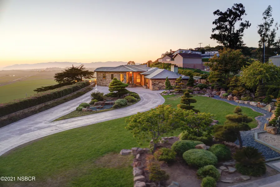 SELLER IS MOTIVATED! BRING ALL OFFERS. Exquisite & modernly designed, PANORAMIC OCEAN/DUNE VIEW home on 2 lots, peacefully tucked into the hillside for ultimate privacy, over 3 acres of park-like Japanese inspired landscaping w/ attached & detached garages, Copper roof, 2 fireplaces, generator, tons of entertaining spaces both indoor & outdoor & high-quality finishes. No expense was spared when re-designed. Through the gated entry you will fall in love with the long sprawling driveway embraced by lush landscaping including rare, trees & plants including a 100yr Bonsai & intricate stacked stone wall surrounding the estate. Whether entertaining family or friends, they will all be amazed at the incredible flow of the property including lots of parking, upscale play structure for the kids, teak viewing decks, front & back yards & Koi pond that takes you to a different place & time, Santa Maria-style BBQ & much more! Upon reaching the teak entry you will notice wood floors, the open floor plan, surround sound throughout, A/C, high ceilings, floor to ceiling windows to soak in the views, multiple living spaces, one with another kitchenette/ bar for entertaining, gourmet kitchen featuring granite counters, views, huge walk-in pantry w/ smart space, built-in sub-zero fridge, double oven, lots of cabinets w/ pull out drawers & kitchen island w/ 2nd sink.