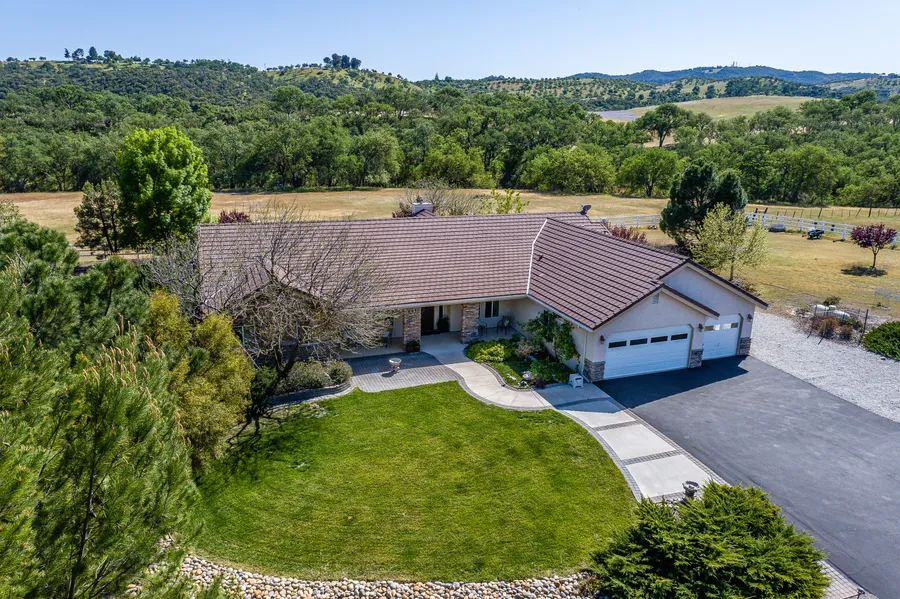 Enveloped in a natural setting this 3,068 sq. ft. home is perfectly situated to enjoy the beautiful vistas, open landscape and views of undeveloped ranch land. Designed with effortless flow the single level layout includes living room, family room, kitchen, dining room, office, 3 bedrooms and 3 bathrooms. Ideal for entertaining and guests the kitchen opens onto the living room with bar seating, walk-in pantry and is connected to the formal dining room. Featuring granite fireplaces and patio access from both the family room and primary suite. The spacious primary suite includes two walk-in closets, tiled walk-in shower with dual shower heads, soaking tub and dual vanity sinks. Outside you are welcomed by well maintained landscape around the property with walking paths, concrete patio space and built-in BBQ. The property is fenced, includes a paved driveway that leads to the attached 3-car garage with epoxied floors, owned solar and incomparable views. Located in the Rancho Salinas gated community that offers relaxed country living on 2.4 acres. All within minutes of downtown Paso Robles, award winning wineries and nearby amenities.