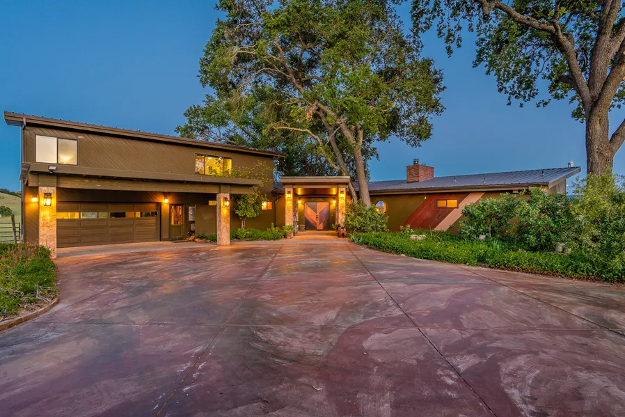 Behind the gates of this extraordinary 13.1 acre Paso Robles property lies a two-story main house, detached 4-stall barn and corral, tennis court, storage barn and two additional guest homes. The 3,300 sq. ft. main house has 2 levels and 2,400 sq. ft. of decking with breathtaking views. The main level layout features a living room, dining room, eat-in kitchen, kitchen, primary suite and attached 2 car garage, while the upper level features a family room and 2 guest bedrooms. With surrounding windows in the living room and deck access from the kitchen youll enjoy the transition from indoor to outdoor living. Enjoy a full kitchen with pantry and eat-in kitchen with open concept onto dining room and bar area. With private deck access from the primary suite on the main level it also features a fireplace, walk-in closet, dual vanity sinks, custom shower and private sauna. Entertain from the s...