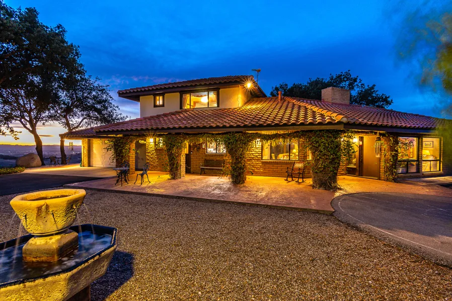 Enjoy views and solitude from this Templeton hilltop home situated on 10 acres. Welcomed by a gated entry and paved driveway that leads to the main residence, detached workshop and glimpses of the surrounding orchards, vineyards and oak studded hills. This two- story home offers 3 bedrooms, 3 bathrooms and 2,634 Sf of living space with a sunroom uniquely positioned to take in the picturesque countryside views. The main floor entry opens onto the family room, living room and kitchen that includes a formal dining space and center island with bar seating. Additionally, the main floor includes a laundry room, mudroom, two bedrooms and attached 2 car garage with quality sauna installed. The upper floor features the master suite with a spacious main room with private balcony, shared sitting room that could double as an office space, walk-in closet and bathroom. The property includes a large detached workshop that offers space for up to 10 vehicles, tools, a spacious mezzanine office area and bathroom. The workshop is fully insulated with heating and cooling, including a 9000lb lift and 60-gallon air compressor. Entertain from the back patio with a built-in BBQ, pergola and firepit while enjoying the panoramic sweeping views and privacy.