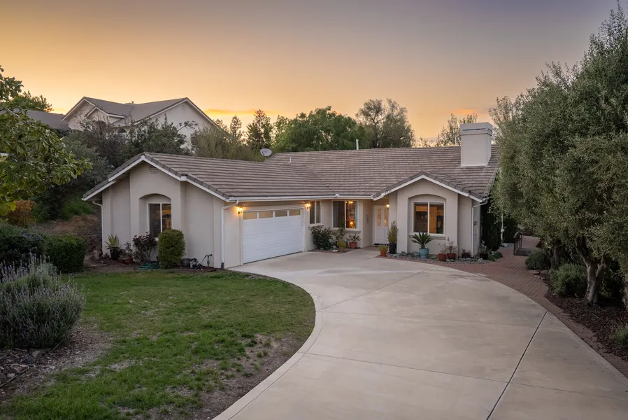 Welcome home to this updated single level 2,023 ± sq. ft home located in the Golden Hills of Paso Robles. With an effortless floorplan of 3 bedrooms, 2 bathrooms and charming backyard garden area make this home a must see. The home showcases wood floors, floor to ceiling rock fireplace, quartz countertops in bathrooms, updated kitchen and abundant natural light. The kitchen stuns with stainless steel appliances, bright open space with pantry, wine fridge and dining area with access to back patio. The primary suite features vaulted ceilings with dual vanity sinks, tub and walk in closet. Enjoy the sunsets and views on the serene outdoor living space with patio area, outdoor firepit and designated gardens. Additional features include an attached 2 car garage, laundry room, office with built in shelving and paved driveway. Perfectly situated in Paso Robles highlighting the rolling hills and breathtaking sunsets all minutes from nearby amenities.