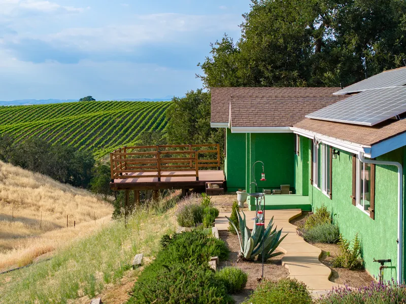 Enjoy enchanting views of neighboring vineyards and the comforts of everyday living in this single story 1,664 sq.ft Paso Robles home. Complete with 3 bedrooms, 2 bathrooms, living and dining room and kitchen with stainless steel appliances. The primary suite showcases vaulted ceilings, private backyard access, walk in closet and a spacious bath. Set on 1 acre with a private driveway, attached 2 car garage, charming indoor-outdoor living with drought tolerant landscape, owned solar system and back-up propane generator. A bright and beautiful home with a picturesque wine country backdrop awaits you.
