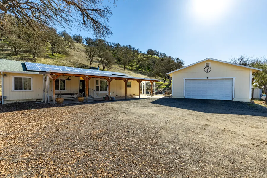 THREE HOME FAMILY COMPOUND or POSSIBLE INCOME OPPORTUNITY! Nestled in the serene landscapes of Ranchita Canyon in San Miguel, this picturesque country property offers three homes on 40+/- acres, just 20 minutes from Paso Robles. Bring extended family to live a peaceful, rural lifestyle, or live in one home and rent out the others. The main home, with OWNED solar system, is approx. 1,700 sq. ft, with 2 beds, 2 baths, an expansive paver surfaced patio with sturdy steel pergola, and an oversized detached garage. Harvest home-grown vegetables, fruit, and eggs from the large, fenced garden area, the multiple fruit trees and the chicken coop. The approximately 1,100 sq.ft. Eagle Nest home, perched atop a hill, has unbelievable views all the way to Paso Robles - and well beyond. It comprises 2 beds, 1 bath, with a storage shed and plenty of parking. It has been updated with some new windows, updated kitchen cabinets, countertops, sink, flooring and a remodeled bathroom. The third 1,100 sq.ft. Valley Home, nestled among the oaks, is a 2 bed, 1 bath, with a covered carport and a fenced front yard. There are animal pens nearby, a tall, covered hay storage area, 2 steel cargo containers and multiple sheds around the property for additional storage. All the homes share the same well, but the main home has its own electric meter, while the two smaller homes share a meter. The power lines run underground, affording clear, undisturbed views of the valley and oaks. This unique property, on a gated private road, invites you to embrace the essence of country living, offering a peaceful lifestyle and potential income.