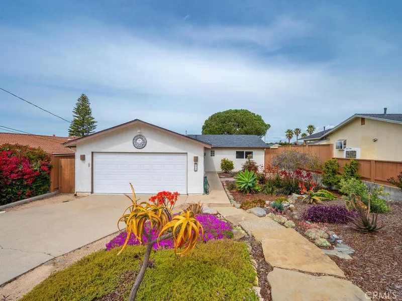Welcome to this inviting single story home boasting comfort at every corner. Step into the spacious upgraded kitchen featuring granite countertops, ample cabinet storage, stainless steel fixtures and a convenient double door refrigerator. The dining area seamlessly connects to the the living room and is enhanced by a versatile gas and wood burning fireplace. Sliding glass doors open to a charming private outdoor living patio, set up with evening lighting, complemented by landscaped gardens including fruit trees and a raised vegetable garden, all equipped with irrigation systems. Enjoy vinyl laminate and tile flooring throughout, along with upgraded bathrooms. Benefit from dual pane vinyl windows, a one year old roof, Cat 5 wiring, new heating ducting and built in living room speakers. Laundry is conveniently located in the two car garage equipped with a French cleat storage system and direct access into the kitchen. Professionally landscaped front yard with native drought resistant plants adds curb appeal. Situated in a desirable neighborhood near Montana De Oro State Park, Sea Pines Golf Course and is within walking distance to Monarch Grove Elementary School and many hiking trails