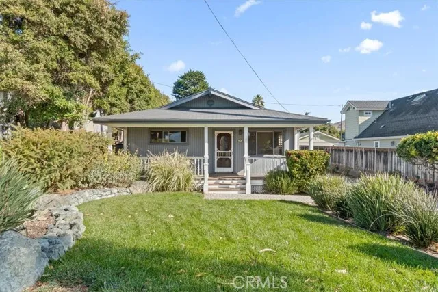 This 4-bedroom expanded classic Cayucos bungalow on a large piece of property is tucked only a two minute walk from downtown and three minutes from the beach. The sunny, large front porch faces a grassy, landscaped front yard where you can listen to birds. In the front rooms at night, you can hear seals barking. The driveway is lined with mature, fragrant rose bushes. The back yard has plenty of room for -- whatever: an ADU, a large outdoor play and living area. At approximately 2,100 square feet, the well-maintained home is spacious. The master suite has a walk-in closet to die for! The kitchen, though slightly dated, is bright and large. The house is ready to live in but also has the "bones" to support updating and remodeling. Park your car and walk everywhere in this centrally-located yet private Cayucos home