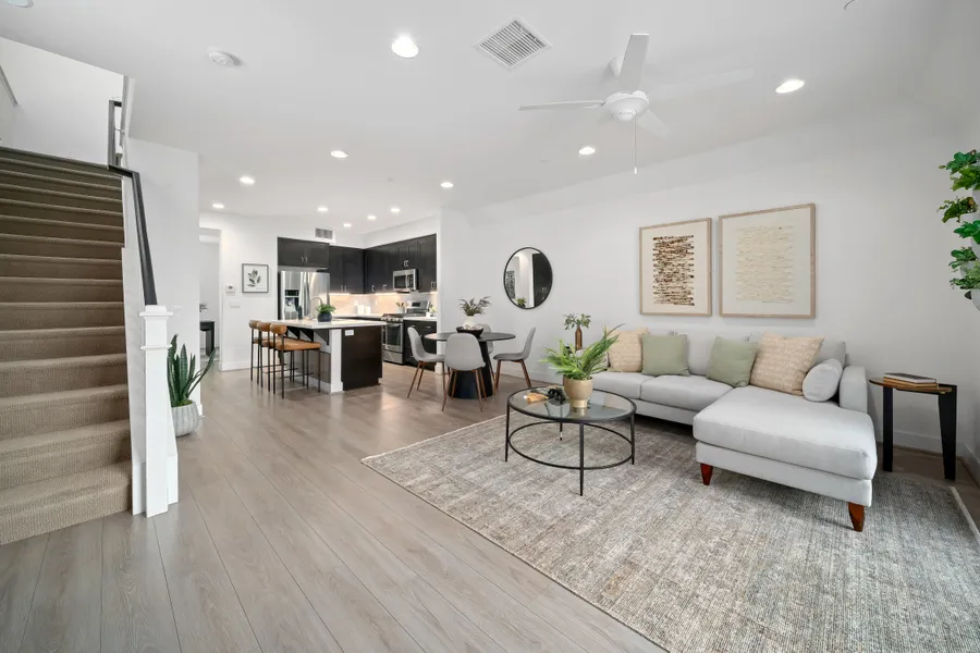 Welcome to this thoughtfully maintained 3-bedroom, 3.5-bath townhome with timeless Mission-style character and warm modern finishes. The first-floor bedroom and full bath offer a private retreat for guests or a flexible home office. On the main floor, the open great room connects to a beautifully designed kitchen with rich espresso cabinets, quartz counters, and a custom backsplash. Step out onto the balcony to enjoy a quiet moment or your favorite drink. Upstairs, the primary suite features a large walk-in closet and spa-style bath with dual sinks and a river rock shower. The secondary bedroom includes an ensuite bath which provides comfortable space for family, guests, or as a hobby room. Thoughtful upgrades like window coverings and designer details throughout add both style and value. 2 car garage plus additional guest parking spaces. Enjoy a relaxed, low-maintenance lifestyle in a c...