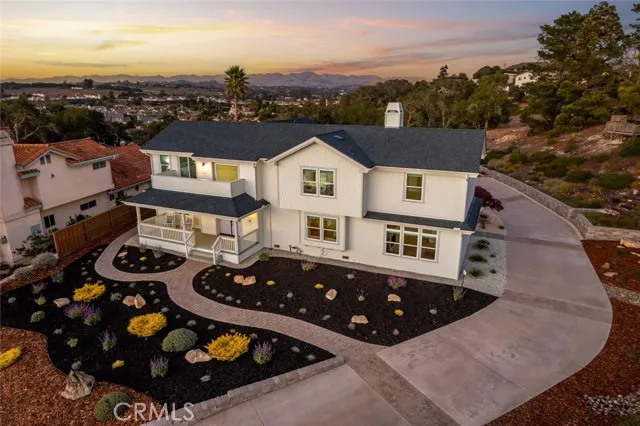 Newly Redesigned Luxury Home with Ocean Views in the front and Valley views in the back. This Unique home is perfectly located at the top of a hill at the end of a private cul-de-sac in one of Arroyo Grande’s most coveted neighborhoods. This home captures the essence of California Central Coast living. The 4 bedrooms, 3 bathrooms and 3,583+- sq. ft. of refined interior, seamlessly blends modern sophistication with relaxed coastal charm. Set on .66 acres of low maintenance, professional landscaped grounds, this property is perfectly oriented to maximize sweeping ocean views of the Oceano Dunes, Pismo Beach, and Avila Beach, as well as a beautiful view of the Edna Valley. With 35 windows, you have views from every room. The sliding glass and French doors open up to decks and patios creating the ultimate indoor/outdoor lifestyle, ideal for entertaining or quiet reflection. The exterior has been redesigned with James Hardie Cement siding on the entire upstairs and the majority of the downstairs, new roof done with CertainTeed Presidential TL shingles and all new seamless gutters with leaf guard and downspouts. The interior features new plush carpets with extra soft padding upstairs, all new wide plank French oak downstairs, newly painted with neutral designer paint, and all new custom window coverings throughout. The open concept kitchen, dining, living, and family rooms each anchored by a cozy fireplace offer both intimacy and flow. The downstairs has an additional bedroom with on suite/guest bathroom that has been fully updated which provides flexibility for guests or multi-generational living. Upstairs, the primary wing is a private sanctuary featuring a viewing deck, fully updated spa style bathroom with quartz countertops, custom cabinetry, and top of the line finishes, as well as a spacious walk- in closet. There are two additional ocean view bedrooms, a guest Hollywood bathroom and a bonus area with storage. The oversized three car garage provides not only room for your cars, but some additional storage as well. Conveniently located minutes from the Historic Village of Arroyo Grande, world-class wineries, renowned eateries, coffee shops, boutiques, and a short drive to the Pacific Ocean. This home embodies the quintessential Central Coast lifestyle!