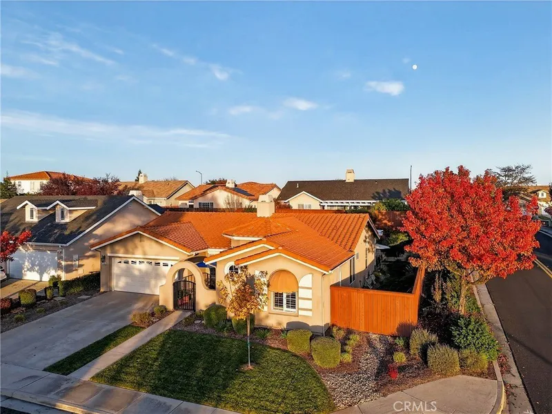 There’s a peaceful ease and quiet confidence to this home the moment you arrive—from its hilltop corner setting to the welcoming privacy of the gated courtyard. Set in the Serenade neighborhood of Paso Robles, this single-level 3-bedroom, 2-bath home offers bright, comfortable living, thoughtful updates, and outdoor spaces designed to support an easy Central Coast lifestyle. Plantation shutters throughout the home add light control, privacy, and a clean, timeless look, while the new air-conditioning system enhances year-round comfort. Inside, the layout flows comfortably from the sunlit sitting room into the main living area, where a gas fireplace with a stone surround and reclaimed barn-wood mantel adds a rustic, grounding touch. Arched doorways, wood floors, and tall ceilings create an intuitive sense of openness. The kitchen is designed for everyday convenience, featuring light oak cabinetry, granite counters, a breakfast bar, elegant tile backsplash, stainless steel appliances—including a double oven—and durable LVP flooring. The dining area sits just off the kitchen with seamless access to the backyard for indoor-outdoor living, and a dedicated laundry room with storage adds to the home’s function and flow. The private primary bedroom enjoys abundant natural light and direct access to the backyard through sliding glass doors, with a remodeled ensuite bathroom offering dual sinks, LVP flooring, a custom step-in tile shower, and a spacious walk-in closet. Two additional bedrooms and a full guest bath with a tub/shower insert provide flexible space for guests, work, hobbies, or personal needs. The backyard is designed for relaxation with a pergola-covered brick-paver patio, mature landscaping on drip irrigation, and a tiered retaining wall that frames the space beautifully. Located in a highly accessible neighborhood with sidewalks throughout, close to shopping, dining, parks, and everyday conveniences, this home blends comfort, usability, and Paso Robles living in a way that feels both practical and welcoming. Beautifully maintained and set on a landscaped 6,700 sq ft corner lot, this move-in-ready home offers a feeling that’s hard to miss. This could be the one—schedule your private tour today.