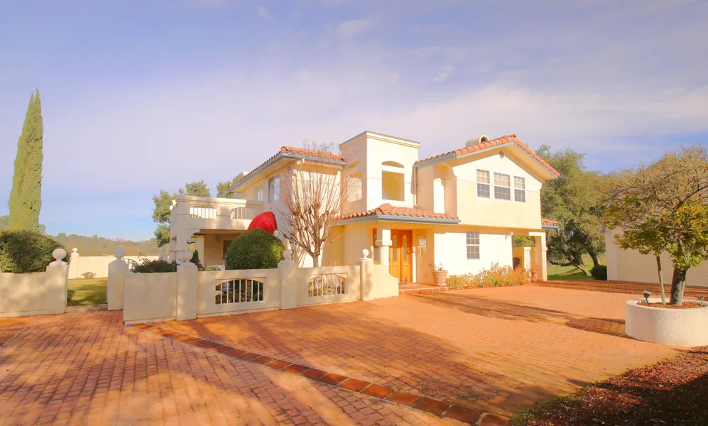 Beautifully designed home on extremely private 3+/- acre parcel of land. The property is gated for security and privacy, while the native trees and open land create an atmosphere of seclusion - all just minutes to town. Enjoy fantastic views from the many large windows throughout the home. The home offers 3,163 sq. ft. of well designed living space, with a bright entryway, many windows, and French doors to three different patios and a view deck. The large kitchen with second island sink and bar seating is perfect for entertaining, or casual dining. The formal dining room and living room compliment the huge family living space with its fireplace and doors that open to a tree-lined patio. You will also find indoor laundry, a mud room leading to a covered outdoor seating area, ceiling fans and ceiling lights, and lots of storage space in this circular floor plan home. Outside the home there is a detached two-story garage, two fountains, and a walled garden area complete with a custom gazebo. For animal lovers there are four partially covered pens, a tack room, grazing pasture, and a large flat area for an arena. The property is deer-fenced to protect the beautiful roses and other landscaping. Call for an appointment to explore all this property has to offer!