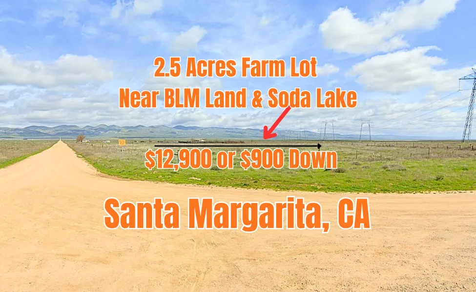Step onto your own 2.5-acre slice of freedom in Santa Margarita, California. This flat, open land gives you the space to build your homestead, start a small farm, or just escape the rush of city life. Power is only 0.37 miles away, and Soda Lake is just 5 miles down the road, giving you easy access to nature and fun weekend trips. The property sits in the peaceful California Valley, where you can enjoy clear starry skies, quiet mornings, and wide-open views. With nearby BLM land, you can hunt, ride ATVs, or explore to your hearts content, and San Luis Obispo is just 65 miles away when you need a bigger city. Whether youre looking for affordable California vacant land, a smart land investment opportunity, or a getaway to call your own, this property checks every box. Land like this doesnt stay available for long, so call or text today before someone else claims it.