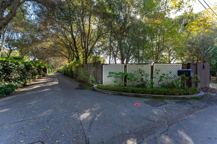 Secluded property in Menlo Circus Club location. Set far back off the street on a tree canopied drive, the home enjoys privacy, tranquility and a magical setting. Lovely, single story home on a flat lot surrounded by mature trees and lush greenery. Situated in an idyllic setting, the home is located on one of the most sought after streets in the Menlo Circus Club area. Build new or move into this swanky, Mad Men era home. Current survey available. Boundary markers in place.