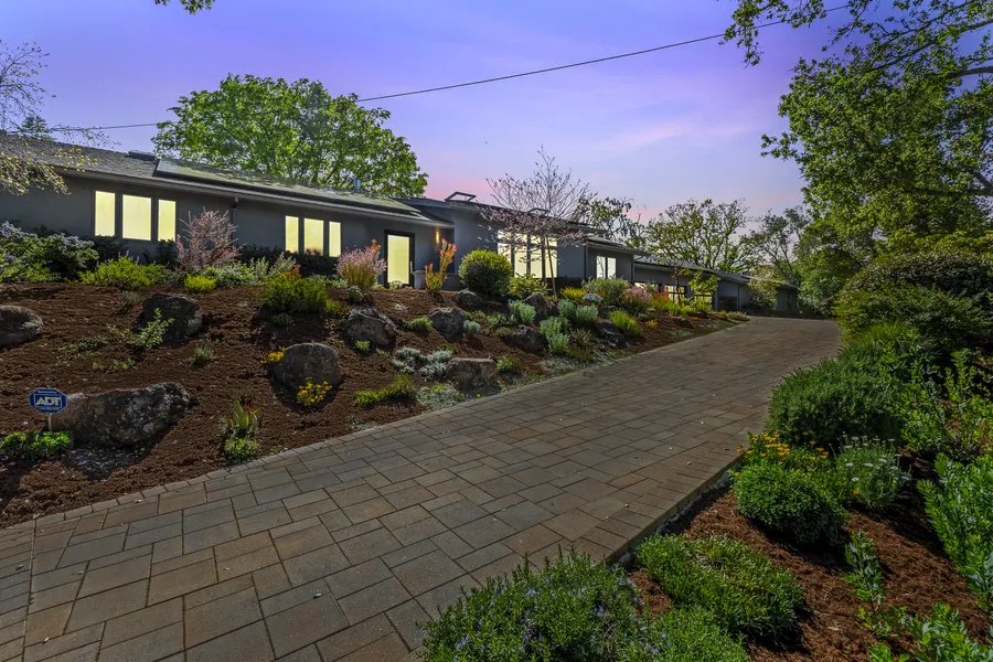 This turnkey home was rebuilt and expanded into a four bedroom modern home with the ultimate in indoor/outdoor living. The dining room features a modern glass wine cellar to showcase your collection. The gourmet kitchen and family room open seamlessly to the breathtaking backyard. The spacious master suite has a luxurious bathroom and a large walk in closet, a cozy fireplace and a large separate home office with built in furniture. There are three other spacious bedrooms and a home gym with floor to ceiling mirror wall and padded floor. You will also enjoy watching movies in the home media room that features a THX certified sound system. There is also a new 1 bedroom cottage with a kitchen and bath, which provides additional private living space for guests or extended family members. The four-car garage is great for car enthusiasts or those who require ample storage space. Five Tesla power walls and a generator allow you to be sustainable while providing backup power. Moving outside every part of the yard has been fully utilized. The stunning gardens surrounding the property include a waterfall, pool, cabana, fire pit, Diamond stainless steel hot tub, and outdoor kitchen with a pizza oven. These features provide ample opportunities for outdoor entertaining and relaxation. Raised beds allow you to grow your own vegetables. In addition, the large children's play area with a tree house, grass area, sand box, and trampoline is a fantastic addition for families with children.