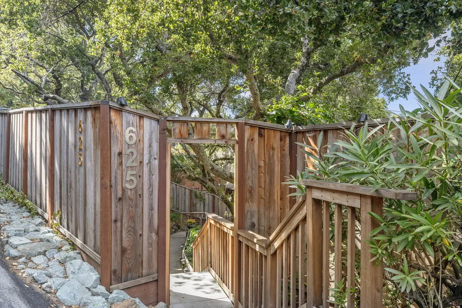 Retreat style living in Emerald Hills. This peaceful, unique home is built as a compound with living, kitchen, dining, bedrooms and baths in one structure and two massive offices, storage and two car garage in another. Entering the home through a wooden, private gate one is beckoned to slow down and enjoy the beautifully remodeled home with canyon and city light views. A stunning serpentine rock wall at the front door made by local masons is the first glimpse of the unique details this home features. The living area with custom concrete, wood burning fireplace and cherry cabinetry and shelving is a relaxing place to unwind. A cedar wall adds to the natural vibe of the home. The recently remodeled kitchen features artisan concrete counters, embedded crystals in back splash, custom lighting, Thermador 5 burner gas cooktop, Miele oven and dishwasher and Frigidaire refrigerator. A water filtration system is connected to this sink for purified, clean water. The informal dining area is off the living room and faces out towards the Edgewood Preserve. Adjacent to this area is a cozy space for reading, relaxing or simply taking in the peacefulness of the property. Currently used as a yoga room, the main floor bedroom has the same vast views and custom closet. Recently updated full bathroom features Neolith sintered stone flooring, showers and countertops. The floors on this main level are all heated. A sleeping loft is accessed by an iron staircase above the main floor. The lower level is dedicated to the main master suite and laundry area with Bosch washer and dryer; both included in the sale. The spiral staircase railings are finished with Balcutta ship knotting. Every door was specifically designed to allow light, maximize space and openness. Many have reeded glass and mirrors to further reflect light. The master bedroom has a mirrored wall which enhances the forest outside and adds to the feeling of bringing nature indoors. There is a small deck and sliding door, perfect for a morning meditation and an intimate connection to nature. Walk in closet with large capacity has been outfitted with a carefully designed Elfa closet system. The master bath with steam shower has heated floors, neolith stone features, double sinks and windows overlooking the oaks, buckeyes, bays, laurel and deer. There is an additional structure which would be an ideal ADU (buyer to verify possibility with the city). Currently used as an office, conference room/ bonus room it is ideal for a startup, home office with multiple workers or simply to use in a creative fashion. There are two large storage areas here which would be perfect conversion for a kitchen and bath. Above this living area is the two car garage with storage and workshop areas. There is plenty of room for 2-3 additional cars in the off street driveway. Tesla leased solar panels are also included. Between the two structures is a large deck for outdoor dining and reflection. Large, well maintained Oak trees create a private atmosphere. On the west side of the home is a flat area which would be perfect for a sauna, hot tub or vegetable garden. There is a nearby lake for local residents as well as two nearby trailheads to Edgewood Preserve. Close to Peninsula Community Center and the Elks Country Club and golf course. Roy Cloud Elementary, Woodside High School.