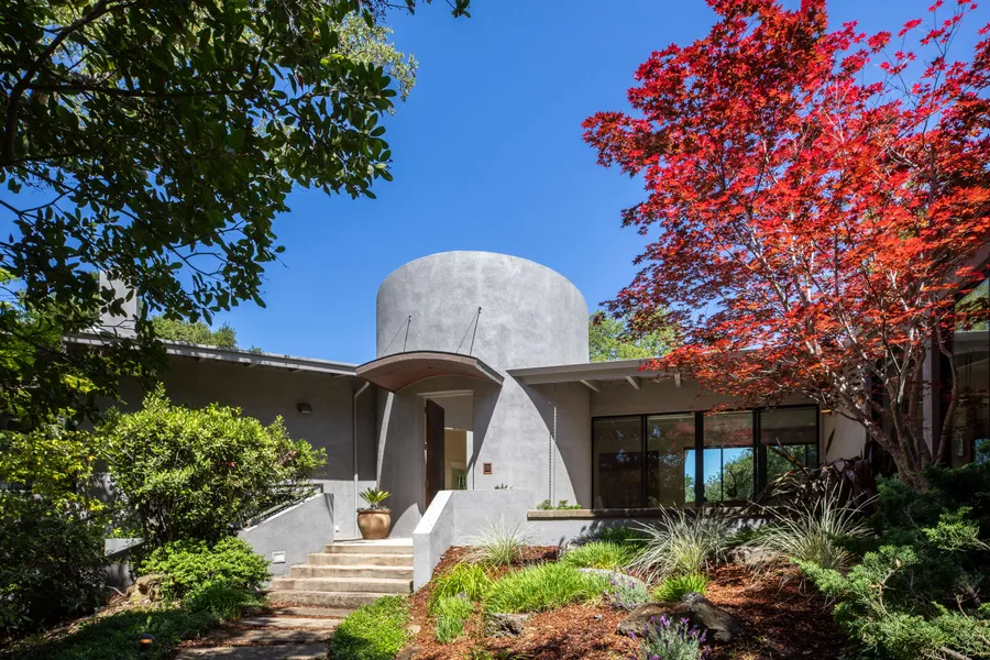 This secluded, gated 2.96 /- acre property has three bedrooms, three bathrooms in the main home, and a stunning separate art studio/office with its own driveway. This contemporary home offers a seamless integration of home and nature. The vaulted ceilings soar at approximately 14 feet. Skylights and oversized windows and doors provide natural light and an effortless flow to the natural surroundings— providing inspiration. The living room has a fireplace and sets of doors on both sides that open to patios. A nearby office with built-ins is a few steps up. The formal dining room is surrounded with windows and doors. This allows you to expand entertaining to the outdoor areas. The eat-in kitchen offers sleek maple cabinetry— and lots of it. Stainless steel appliances provide a chef with the right tools. There is a pool, and nearby lower-level apartment or exercise space, with a full bathroom and kitchenette. Located in the desirable Westridge Neighborhood, this home is the epitome of Portola Valley living and is just a short distance to the global financial and tech centers on Sand Hill Road.