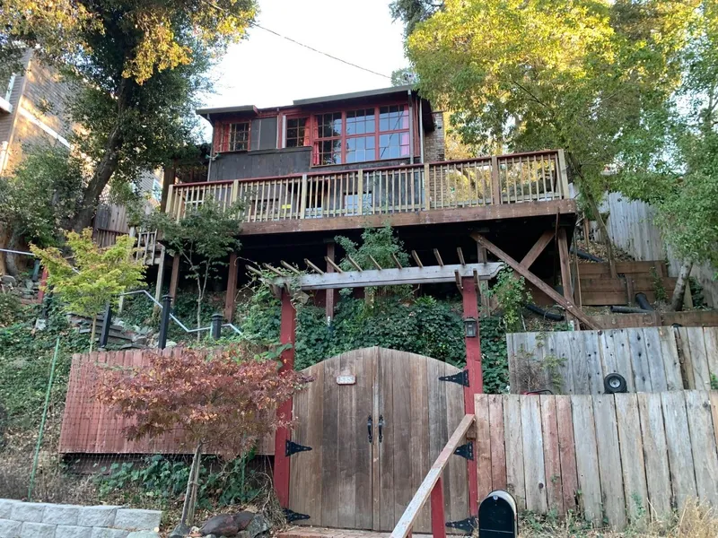 Live in a single family home in $2.5M to $3.5M neighborhood with tremendous upside or live in a condo, your choice. Original craftsman cabin nestled in a tranquil wooded sanctuary, offering a rare and unique opportunity. 10-minute drive from downtown Redwood City. Abundant natural light, deck, patio and terraced gardens, ensuring year-round comfort in the temperate emerald hills climate. The upper story features partial lake views, one bed, one bath, and an open floor plan that seamlessly connects the kitchen, living, and dining areas. The rustic kitchen overlooks the peaceful backyard. The attached lower level includes an ensuite with a separate entrance, kitchenette, bathroom, and deck, providing versatility and a possible rental. Additionally, a detached artist studio can serve as an ideal office, workshop or storage. The large deck offers a peaceful retreat with views of treetops and the lake. Situated minutes from Highway 280, Canyon Plaza, Whole Foods, and downtown Redwood City, the property is also close to Roy Cloud Elementary School (K-8) and the Emerald Lake Country Club, a membership-based social club featuring a freshwater lake for leisurely activities. Two parking spots right in front. Many virtually staged pictures and previously listed photos have been included.