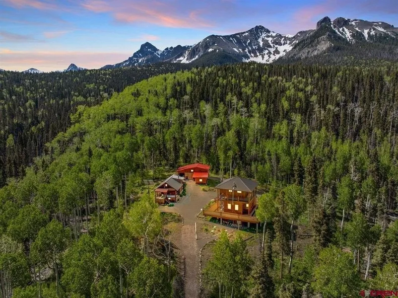 Tate Rogers, Rogers Real Estate Group, LLC, C: 970-729-2366, , Have you ever wanted to own a private back country lodge? This could be exactly what you've been looking for. 66 Wildwood Lane is a one-bedroom modern home built in 2019 and situated on a high mountain ridge at 9800' elevation. Architecturally, the home is inspired by the fire lookout towers of the 1930's. Complete with radiant in-floor heat, stainless appliances, state of the art solar electricity, and rich woodwork. Abundant windows allow tons of natural light and views in every direction. This beauty sits upon an 8 acre lot which directly borders the 16,566 acre Mt. Sneffels Wilderness area. Each morning, from your bed, you'll wake up to amazing views of North Pole Peak and Mt. Hayden. In addition to the main house there is an adorable, rustic guest cabin hand crafted with logs harvested from the property. With 2 sleeping...
