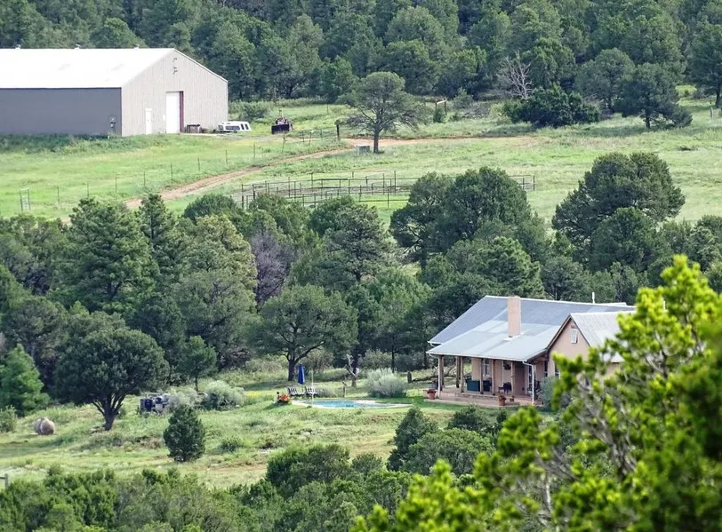 Red Cloud..Rarely does a small ranch of this quality and character become available.Red Cloud Ranch is 303 acres adjoining 10,000 protected acres in the shadow of the Pecos Wilderness.Defined by privacy and stunning views of Hermits Peak and Tecolote Mesa, this grass and tree covered land sits on the historic Santa Fe Trail.The stands of healthy trees mix with open meadows, and high rock outcroppings. Wildlife abounds. The perfectly sited 3 bedroom, 2 bath, Northern New Mexico style home will surprise you in its detail and versatility. The oversize pantry, laundry room and dual offices can function in many different ways. There are mountain or courtyard views from every window. Enjoy the beauty of plaster walls, and in-floor radiant heat. Rest under the long portals, and relax in the heated pool.Work on your projects in the well-equipped shop.Explore the land, it archaic Indian sites, a...