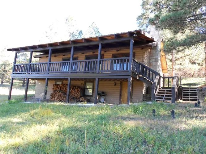 Charming log cabin located in the mountain golf community of Pendaries Village in Rociada, NM. Approximately 8000' elevation, close to National Forest, hiking, biking, skiing and boating. Private .404 acre lot with views of valley. 3 bedroom, 2 full baths. One bedroom and bath are located on lower level with their own entrance. Fireplace in living room, open floor plan, large master. Covered back deck. Home is electic with septic. Community water system. 30 minutes from historic town of Las Vegas, New Mexico. Covenants and retrictions apply.
