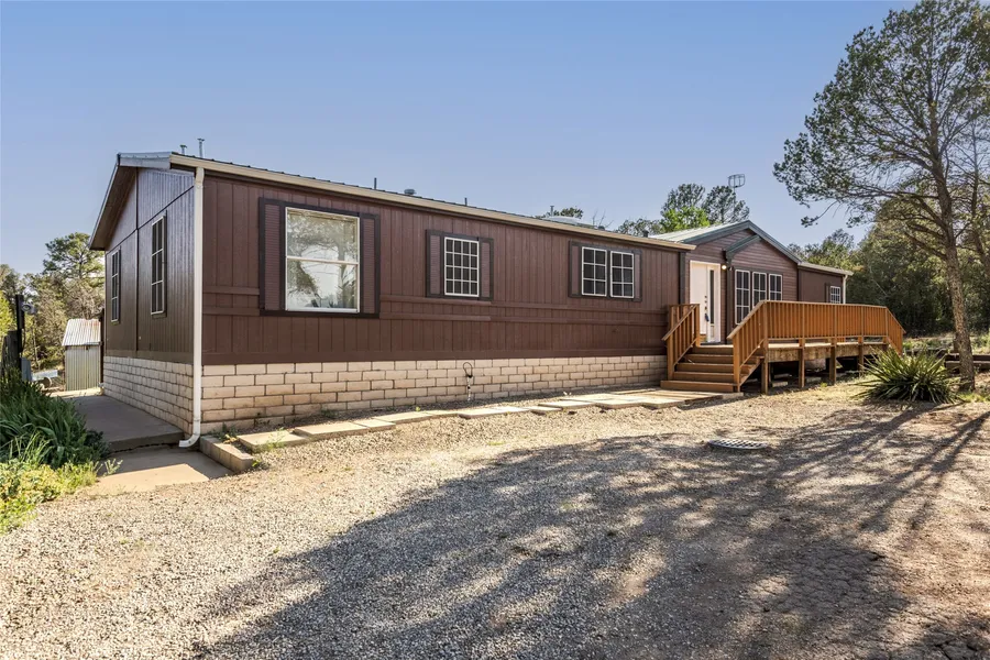 A little slice of heaven on 2 beautiful wooded acres is up for grabs. It is quiet, secluded, private and unique. The home has 3 bedrooms, 2 baths, open concept living, dining, kitchen as well as a spacious office room off the primary suite. Amenities include a jotul woodstove, central air conditioning, metal roof, community water and more. A huge deck is yours for entertaining or relaxing in the summer sun. Off the deck is a screened room (sleeping porch) that houses a wood fired metal hot tub and swinging bed. There is also a functional tiny home on the property, that from it's humble beginnings as a School bus has become a fully enclosed cabin style building with a "work of art" stone fireplace. There are many lovely spots to sit and enjoy this fully fenced property. This is Northern NM at it's finest, a drive up the Pecos River Canyon leads to National Forest and amazing hidden beauty...